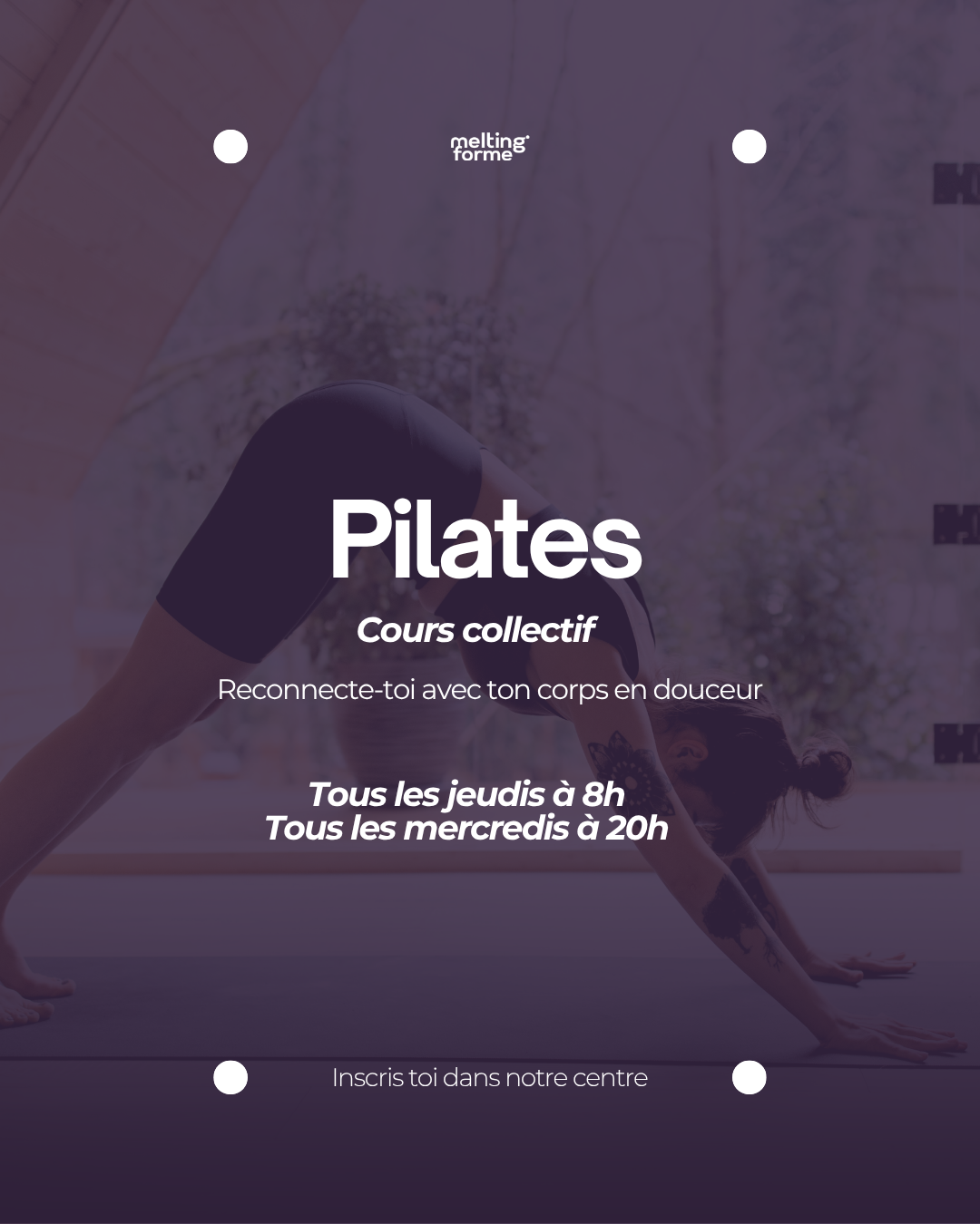 Le Pilates est l’allié parfait pour renforcer en profondeur ta sangle abdominale, améliorer ta posture et ton équilibre. Pendant 45 minutes, tu enchaînes des exercices précis en pleine conscience, avec un focus sur la respiration, l’alignement et le contrôle du mouvement. Que tu sois débutant ou confirmé, tu trouveras ici un vrai moment de recentrage... et ton corps te dira merci !